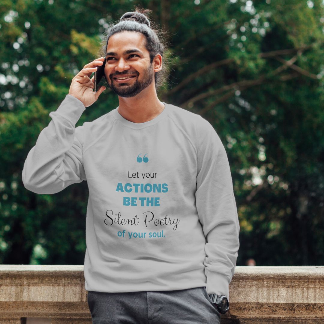 True strength doesn’t shout; it speaks in quiet actions and conscious presence. Wrap yourself in the profound message of the “Silent Poetry” sweatshirt, a piece designed for the man who understands that his most powerful impact is woven through integrity, calm focus, and deliberate grace.