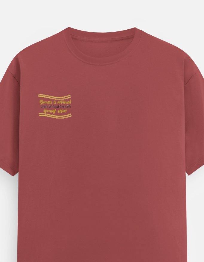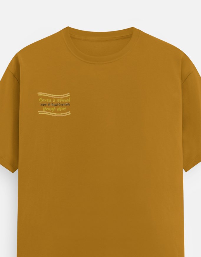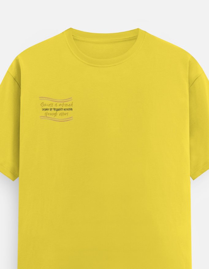 Progress is forged, not found. This tee carries the powerful Sanskrit wisdom **”Udyamena Hi Siddhyanti Kāryāṇi”**—”Success is achieved through effort.” It is for the man who knows that mindful, consistent action is the most sacred and effective tool for turning vision into reality.