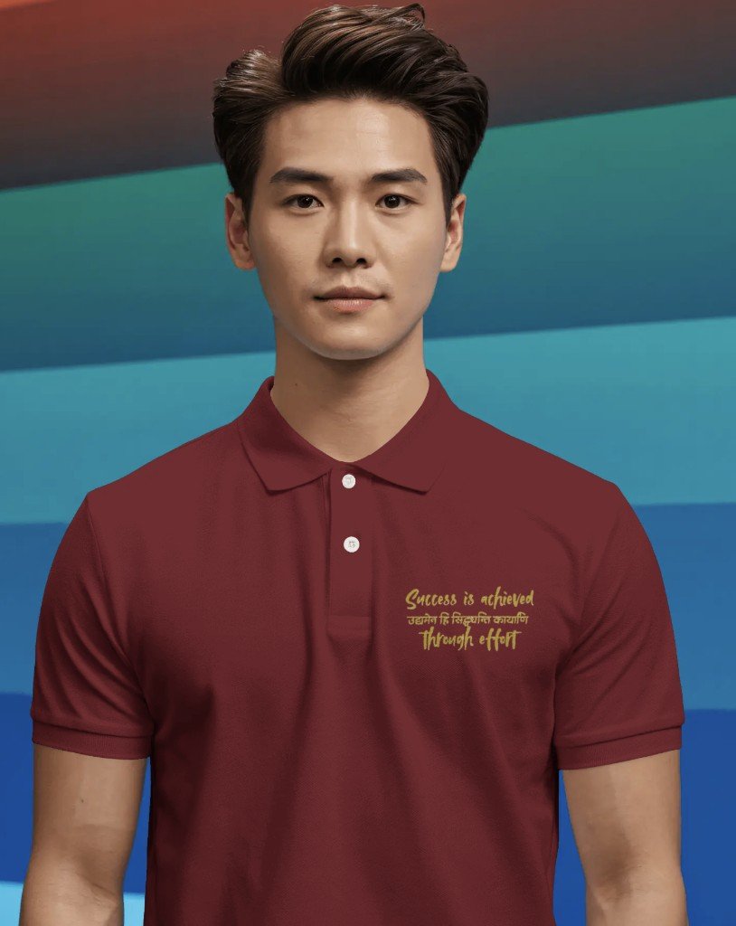 Udyamena Hi Siddhyanti Karyani Men’s Polo T-shirt, Spiritual, Motivation Polo T-shirt